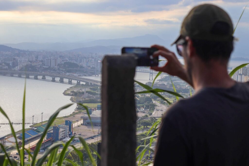 40 é também o número de vezes que Michel, cria do Morro do Mocotó, subiu as ladeiras do morro onde nasceu como guia turístico. Aquele, porém, era um grupo de visitantes maior do que o normal. O Rolê do Mocotó, projeto de turismo de base comunitária do território, integrou pela primeira vez, em 2026, a programação da Maratona Cultural da cidade. Na véspera do aniversário de 353 anos de Florianópolis, o asfalto subiu o morro para conhecer quem, de fato, fez nascer a Ilha da Magia.