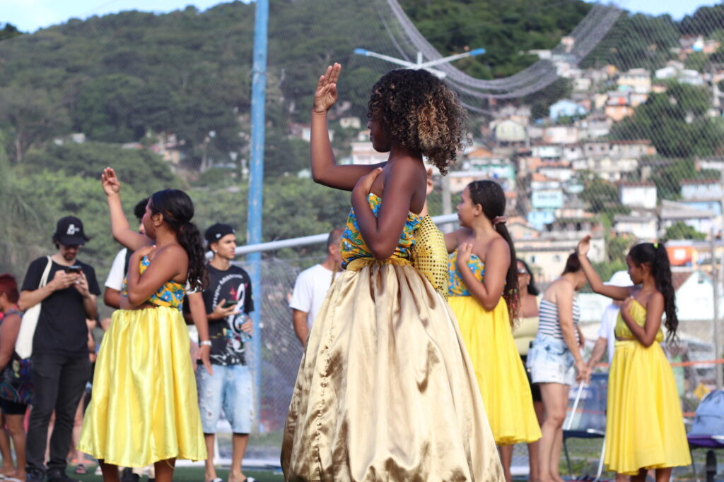 Centenas de jovens já passaram pelo Mittos, projeto social cujas principais atividades são a dança e a música afro – mas que também tem iniciativas de educação quilombola, educação ambiental e formações para jovens aprendizes. O espaço, além de manter viva a cultura do povo preto, busca criar perspectivas de futuro positivas para os crias da comunidade.