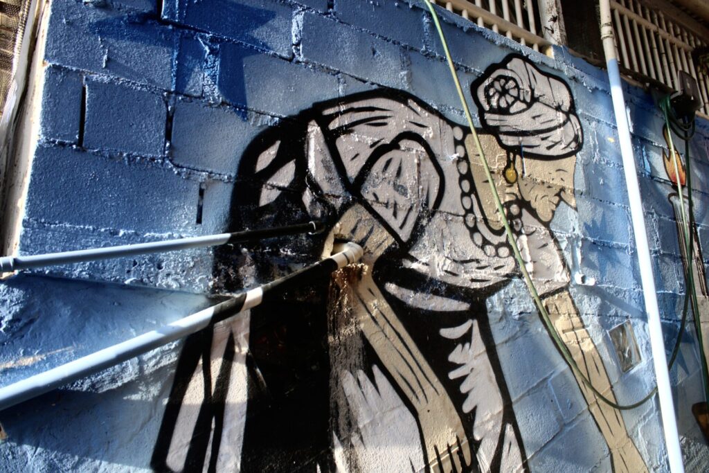 Além dos terreiros, as raízes macumbeiras do Mocotó estão estampadas em uma série de obras de arte pelo morro. Assim como Dona Luci, Mãe Dete também foi homenageada com um graffiti. A obra fica no muro de sua casa e foi realizada no final de 2025, durante a produção da Galeria de Arte.