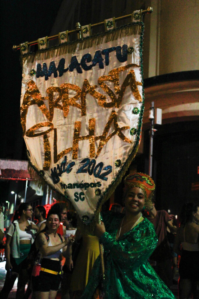 “O maracatu, embora seja uma prática que não é nativa de Florianópolis, ele vem se colocar a serviço. A serviço de uma ancestralidade que aqui, por muito tempo, foi muito viva – e que permanece viva nessas conexões afrodiaspóricas”, conclui.