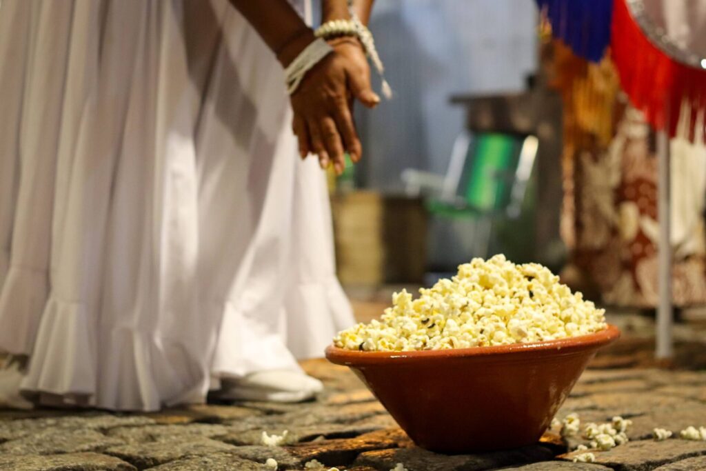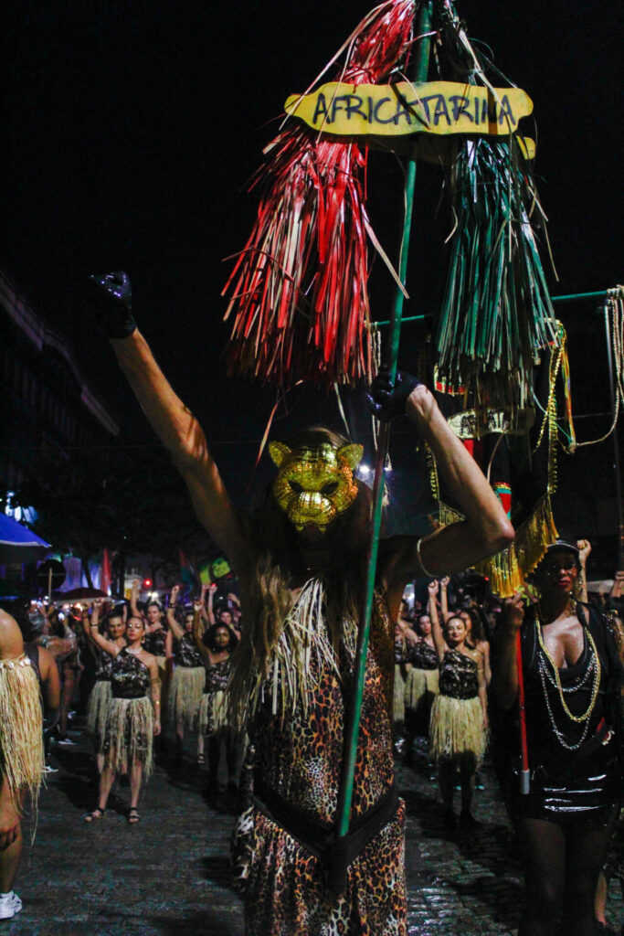 A ancestralidade na rua não é cultuada como algo distante – mas sim, integrada à realidade de cada dia, as nossas lutas e reivindicações. Princípios como comunidade, família e pertencimento, presentes nas histórias de integrantes de todos os quatro blocos, são também princípios afro-religiosos.