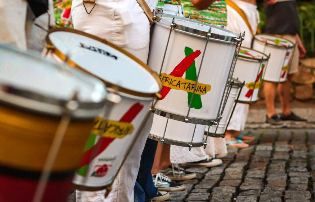 Os Blocos Afros Floripa transformam música em instrumento de memória – e também, de luta por direitos. Incluindo, o direito de existir nesta cidade, de ocupar a rua. Gritamos, ao mundo, que a negritude existe e resiste na capital mais branca do país.