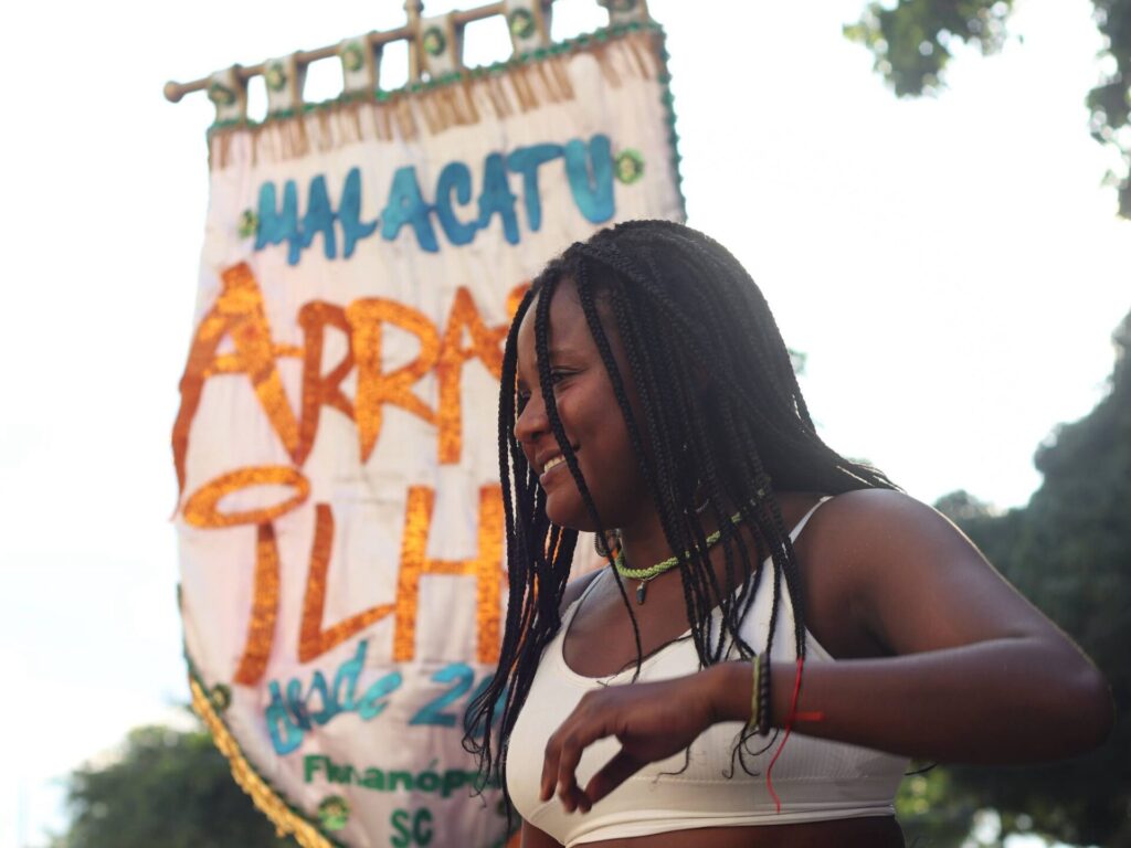 Déborah, que nasceu e passou boa parte da infância em Florianópolis, reforça que estar em um grupo afro-brasileiro ajudou ela a acessar outra ideia de pertencimento no lugar que é sua casa. “Cresci tendo um pai afro-indígena, mas em uma cidade branca. Quando voltei para cá, adulta, e comecei a acessar outros espaços, com pessoas diversas, mudou tudo”.