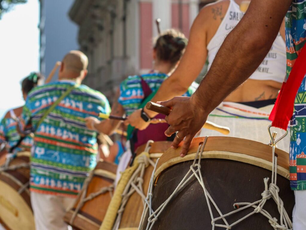 A Ancestralidade celebrada pelos Blocos Afros Floripa não está presente somente no trajeto realizado por cada grupo – seja saindo da encruzilhada ou da Igreja do Rosário. Cada passo dado, cada canção ecoada, cada batida de tambor é um ato de conexão com quem veio antes.